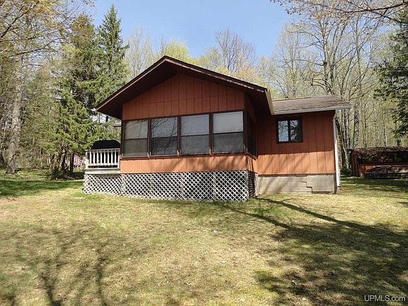 Lake Gogebic: 3 Season cottage located on 141' of Beautiful Lake Gogebic's East Shore. This cottage was built in 1980 and features 2 bedrooms, 1 full bathroom, a kitchen/Livingroom combo with a beautiful stone wood burning fireplace and a screened in porch overlooking the water. On the exterior you will find 2 storage buildings, a 24 x 26 detached garage, and a boat lift with a 40' crank up pier. This package will make an ideal vacation get-a-way. Call today for more information and to schedule a showing. (Tax Info.:2023 Txb. Val.: $72,273, 2022 SEV: $83,400, 2022 Total Taxes: $3,699)