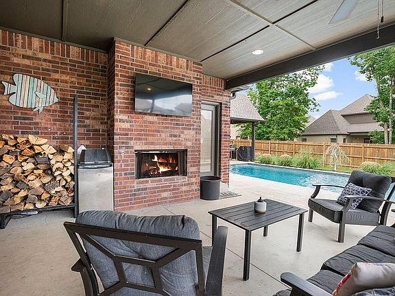 Custom built home in the the Reserve at Dutcher's Crossing that is on a corner lot with a front yard view of the ponds and playground area. Backyard boasts an inground saltwater pool and 2 large covered patio areas. This home has 5 spacious bedrooms (3 downstairs, 2 upstairs) along with a large bonus room over garage, an office that can also be utilized as a 6th bedroom, workout room, etc. Other features include: open floor plan of living room, kitchen, & nook area, high vaulted ceilings, rock fireplace, hardwood floors in master bedroom, custom oversized 3rd car garage, walkthrough laundry to master closet, butler's pantry, large bedroom closets and a seasonal closet that can be utilized as storage or another small office space. All granite countertops and abundant storage throughout the home. Neighborhood is welcoming and friendly and features a private community pool with clubhouse, 2 playgrounds, and stocked ponds with fountains. Home is walking distance from the newly built Bixby West Elementary and Intermediate School.
