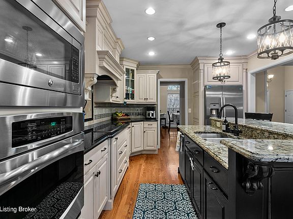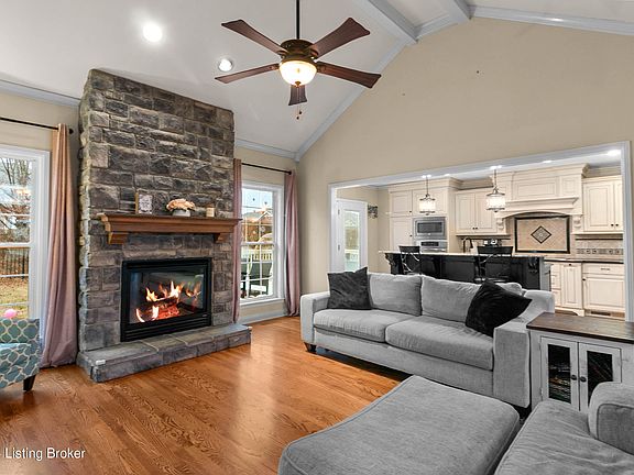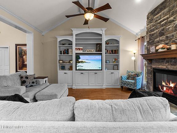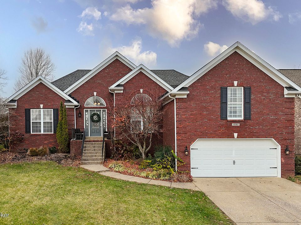 Welcome to 13707 Willow Reed Dr in Louisville's Stone Lakes neighborhood. Seller states their VA Loan may be assumable for qualified buyers. Contact Listing Agent for more details. This is a beautiful 4 bedroom split ranch. All 4 bedrooms and 2 full baths are on the 1st floor! As you enter the foyer with its 12 foot ceilings, hardwood floors, and beautiful crown molding. The open floor plan opens into the dining room which also has 12 ft ceilings, wainscoting, hardwood flooring and a large arched window, as well as into the great room which has a vaulted ceiling, a fireplace with a stone facade, and an entertainment center. Then you enter the kitchen with its gorgeous bar seating / workstation, pendant lighting, granite countertops, stainless steel appliances, and the antique glazed cabinets. The primary bedroom has a tray ceiling, and the primary bath offers a dual sink vanity, a jetted tub, a walk-in shower, and a walk-in closet. The other 3 bedrooms and full bath are nicely sized. The basement has a cozy family room and a bar area with a prep sink and built-in shelving. There is also a bonus room/office and a half bath. The backyard offers a nice big deck, and a poured concrete patio. The backyard is fenced in. The HVAC is 6 years old, and the roof is 10 years old, Radon Mitigation System installed in Nov, 2021, Terminix Termite Treatment was completed in April, 2023, Air Ducts were professionally cleaned in 2023. Located on a dead end cul-de-sac in Stone Lakes, you'll have shopping nearby as well as gorgeous lake views, walking paths, and playgrounds. Close to I-265 expressway access. This neighborhood was Louisville's Homearama site in 2001. Schedule your private showing today at 13707 Willow Reed Dr, Louisville, KY 40299.