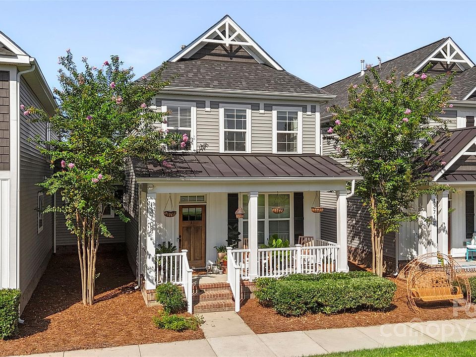 Welcome to Monteith Place (The Villas)! This 2019-built 3BR/2.5BA home blends modern style with thoughtful details. The open kitchen features stainless steel appliances (all convey), an upgraded Electrolux induction cooktop, and a custom walnut island. The living room showcases a shiplap accent wall, gas log fireplace, and surround sound system. Enjoy 9 ft ceilings, detailed trim, engineered oak hardwoods, and all-new light fixtures throughout. Upstairs offers dual sinks, walk-in closets, and plenty of storage. Some of the main highlights of this home include a large front porch, privacy-fenced backyard, and detached 2-car garage with shelving. Energy-efficient upgrades include a tankless water heater, forced air gas heat, and central air all dating (2019) including the roof.