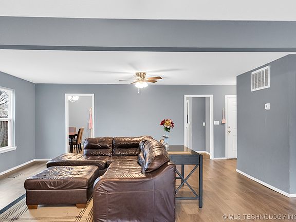 So much space in this 4/2.5/2 on a cul-de-sac street! You'll love the extra large living room with laminate flooring, fireplace and the updated kitchen and baths. All bedrooms are very large with 2 bedrooms down and 2 bedrooms up. The kitchen has a very high ceiling with wood accents along open shelving as well as cabinet space. Gas range, built-in microwave, dishwasher and refrigerator stay. All appliances and both HVAC units are less than 2 years old. Roof approximately 7 years. Home underwent a downstairs fire about 2 years ago (cause by a person, not a fault of the house) and was rebuilt on the inside downstairs. Upstairs was smoke damage only and was professionally restored.