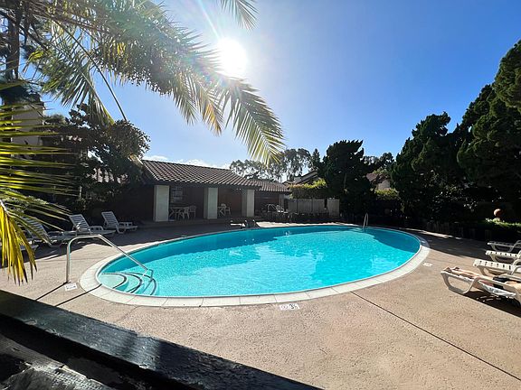 Older low density garden style complex, 2BR 2Ba Condo on Portofino off Del Mar Heights Rd, West of I5. Upstairs with Large View Balcony. Large 1 car garage. Newer wood floors, updated Kitchen. washer Dryer in unit. 1125 sq ft. Showing will be Wednesday Feb 9, 3-5pm. Owner pays cold and hot water, trash. Renter pays Electric. Unassigned parking in complex will require a permit.