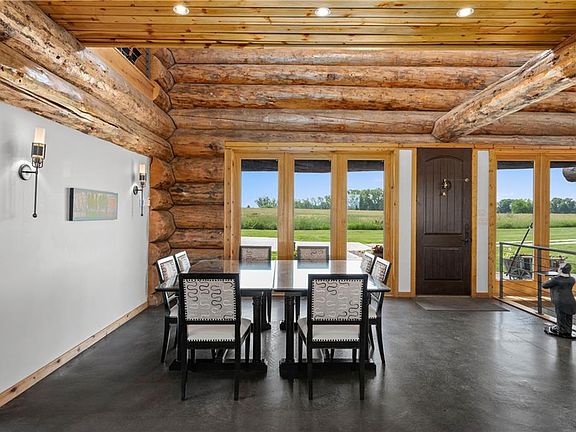 This incredible home is the ultimate in craftsmanship & design. This Ron Labinski custom designed contemporary log home on 41 acres features 18" hand scribed logs throughout that are a work of art. Mr Labinski has been the lead architect on over 20 NFL stadiums! 14” thick foundation w 14” TGI flooring joists on 12” centers support the logs & cement tile roof. As you walk in the front door you will be in awe of the 35' high ceilings in the great room w massive windows bringing in incredible natural light. The totally open concept of the main floor living is warm & welcoming. Huge dining room area hosts a dining table for 8 w room to expand. Walk into the great room w a bank of doors overlooking the 3 ac pond. The fireplace is see through to the huge covered back porch. And the kitchen will make you stop & pause as you take in all the features - custom 6’x9’ entertainment island w refrigerator, icemaker & concrete base & accents; Huge island w custom 8’x4’x1’ glassware case w concrete top, gas stove & pot filler; U-shaped counters wrap around the far wall. Pantry, half bath & mud room off kitchen. Main level Master bdrm w wall of doors to back porch, unique two bathrooms joined by shared shower, large walk-in closet and laundry. Upstairs catwalk to loft office w huge windows overlooking property and ensuite bedroom. Huge lower level family room is perfect game room. Two large bedrooms make the lower level for family. Both bedrooms have ensuite bathrooms, large closets & walk out egress. One Bedroom even has a washer/dryer hook up in the closet! Carriage House offers a heated three car garage below & a one bedroom, 1 bath 900 sq ft guest house above. Super cute & perfect! Ground source geothermal heating & cooling in main house $ new heat pump for apartment. The red barn dates to 1880s & was lovingly restored w cement floors, water, electric, 3 stall w run-in paddocks, tack room & tool room. Lighted outdoor arena. 3 pastures & acres of hay fields.