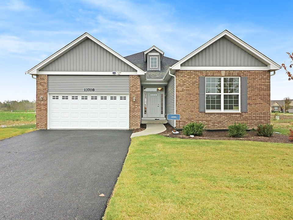 Brand New Ranch home! A well designed 2200 sq ft of open living space for you to enjoy. There is an amazing amount of natural sunlight pouring into all rooms of this home. The "Carmel" offers so much to its first owner including two bedrooms ( could be 3 bedrooms or use as a den), two baths, sunroom, two car garage, and large kitchen with a prep island. 9" ceilings, vinyl plank wood flooring on most of the first floor. Spacious kitchen with Quartz countertops, SS appliances, upgraded cabinets with crown molding. Upgraded light package. Master bedroom with tray ceiling and bay window. Full basement with rough in bath. Landscaped with irrigation system. Ready to go!