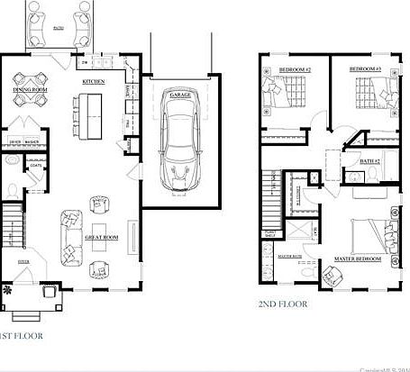 Second floor master w/walk-in closet, master bath with dual vanities. Open floor plan with one car detached garage.