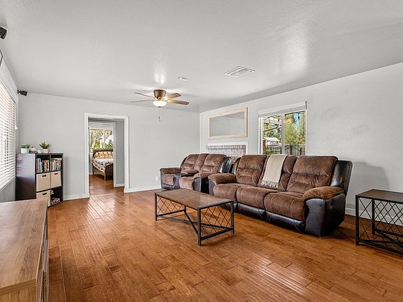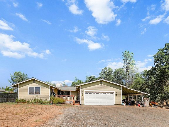Beautifully updated 3-bedroom, 2-bath home on 4 acres off Bear Mountain Rd! Inside you'll find a remodeled kitchen and updated bathrooms. Owned solar panels and a well keep the utility costs low. Step outside to a spacious backyard ideal for entertaining—complete with a sparkling Gunite pool, cozy firepit, patio area, and raised garden beds for your green thumb. The inviting front deck provides a perfect spot to relax and enjoy the peaceful surroundings. The fully fenced yard offers plenty of room for animals. Parking options include a 2-car attached garage, a carport, and RV parking with hookups.