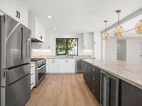 Experience breathtaking ocean & sunset views from this stunning modern contemporary home! Designed for luxurious indoor/outdoor living, this property boasts panoramic ocean-view decks perfect for dining, entertaining or simply unwinding. The chef's kitchen is a masterpiece, complete with an expansive island, high-end Miele 8 burner stove, wine refrigerator & reverse osmosis system. Step outside to a large secluded backyard oasis nestled among the trees for ultimate privacy. The primary suite on the top floor offers commanding ocean views, private balcony, glamorous bathroom, spacious walk-in closet, an adjoining loft - ideal for office or family retreat. Bonus ADU-style equipped with full kitchen adds versatility to this exceptional home!