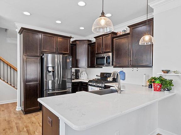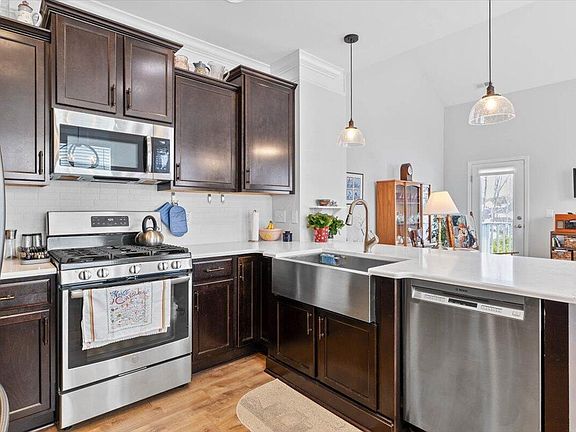 Welcome to Sweetwater! This corner lot home boasts spacious living across three floors. New LVP has been laid on the entry level floor. The home offers modern finishes throughout with the primary bedroom suite and laundry both on the middle main living floor. The kitchen has a gas range and beautiful quartz countertops along with beautiful backsplash and pendant lighting to create a warm and inviting space. The open floorplan offers ons of natural light throughout and there is both a lower-level walkout and a mid-level deck for outdoor entertaining. This property backs up to a wooded buffer and offers a beautiful serene view; creating the perfect place for your morning cup of coffee. Reduce your monthly electric bill by leveraging the solar panels that are already installed! The Sweetwater community offers shops, restaurants and a grocery store. In addition, there is a community pool, workout room, clubhouse, dog park and playground. There's something for everyone!