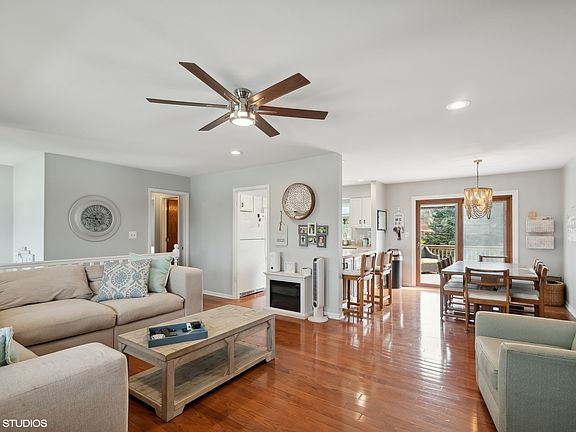 Beautifully updated and well maintained 4 bedroom 2 bath Elk Grove Village home! Hardwood floors throughout the living room dining room and kitchen. A great open concept kitchen and dining room, with a large peninsula island, great for entertaining. Two bedrooms on the main level with an attached en-suite bathroom. A full finished lower level with a large family room, wet bar, 2 additional large bedrooms and a laundry room. An attached 2 car garage with plenty of storage space. Outdoors you have a great deck off the kitchen that overlooks an expansive back yard. This home is in an amazing location, just blocks to parks, schools, shopping and easy access to the expressway. New furnace and a/c installed in 2022!
