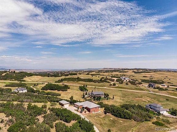 What a Great Opportunity in Keene Ranch! This all Brick Walkout Ranch with a 24 x 40 Outbuilding on 4.93 Acres is Hard to Find! Large Great Rm is Sunny & Bright w Hrdwd Flrs Open to the Dining Area*A Large Country Kitchen has tons of Cabinets, Island, Pantry & Large Eating Area*Spacious Master Suite w 5 Piece Bath & 2 Closets*Nice Spare Bedroom*Office/Study on the Main Level which could also be Another Bedroom if you so Desired*The Lower Level has a Very Large Family Rm w a Wet Bar, 2 Spare Bdrms, a Full Bath & Don't Miss the Large Unfinished Area Which Makes for a Great Workshop with a Separate Door to the Exterior*This Home Boasts 2 Staircases to the Lower Level, 2 Free Standing Gas Fireplaces Which Operate off Thermostats, Newer Pella Windows & Drs, Concrete Drive, Newer Roof & Newer Ext Paint*Well Maintained*Outbuilding has Overhead Doors on Each End*Enjoy the Views of Castle Rock*Low Traffic Street*Minutes from the Town of Castle Rock & I-25*Lowest Price in Keene Ranch-Great Buy!