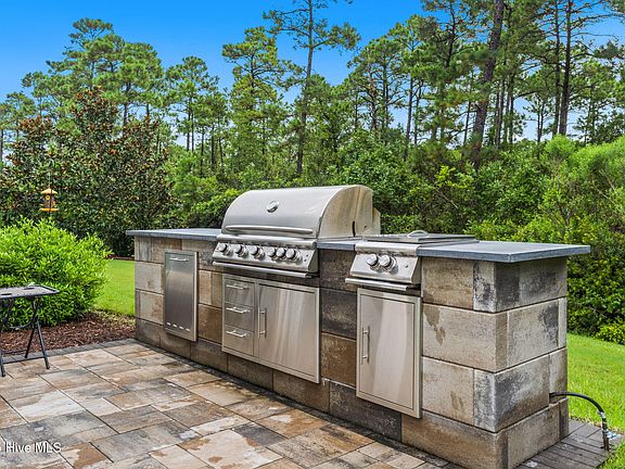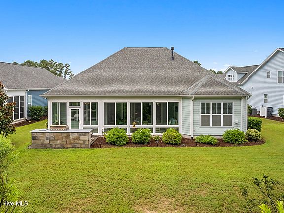 Coastal living at its finest in the Retreat at Ocean Isle Beach, a Bill Clark community. Located minutes to the beach at OIB, and the neighborhood is one of the few areas where you can legally drive a golf cart to the island. Move-in ready Ansley model has numerous custom upgrades. Enjoy the open concept floor plan with large great room with coffered ceilings with bead board and crown, hardwood floors, ceiling fan, recessed lights, and 8ft sliding glass patio doors leading to the glass enclosed Carolina Room. Prestige kitchen with Frigidaire professional appliances, including 5 burner gas cooktop with pot filler above, large wall oven and microwave. Dining area with tray ceiling easily seats 6 comfortably at the table. Enjoy the Carolina room flanked in glass for enjoying the beauty of nature in the back yard while entertaining in the custom outdoor kitchen with a Blaze grill with side burner, storage and trash bins, concrete counter. The grill is connected to propane tank underground. Primary suite continues with hardwood floors, tray ceiling with crown and fan, huge walk-in closet with wood shelving, en-suite with large tiled walk-in shower, double sinks, quartz, private water closet plus linen closet.. Two additional bedrooms, one with vaulted ceiling. 2 car Garage and driveway with paver side extension. Irrigation system managed by owner. Schedule a tour to see this home today!!