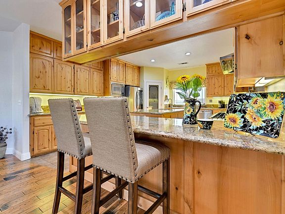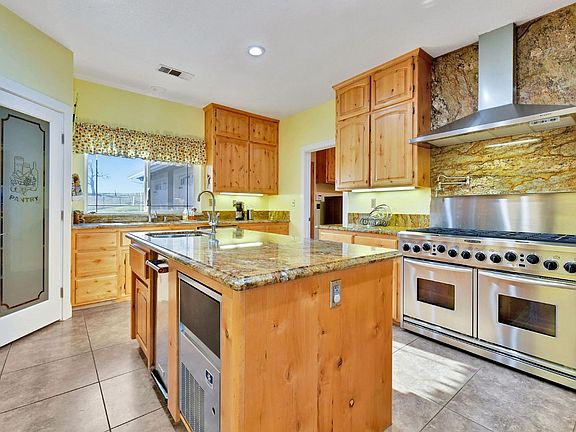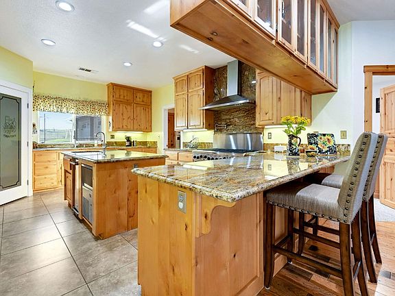 Amazing 3060 sq.ft. custom home located on usable 3.27 acres. Dream kitchen includes 8 burner gas range with double ovens, large island, built-in ice maker, trash compactor & cabinets galore including pull outs. Nice walk-in pantry. Huge living room with woodstove & windmill style ceiling fans. Large office with built in desk & cabinets for additional storage. Master suite is spacious with large walk-in closet, walk-in granite shower, dual sinks plus a door leading out to covered patio with even a hot tub. Approx. 1600 sq.ft. shop with roll up door & separate room/office with air conditioning. Large covered patio in back for entertaining along with horse pits, surround sound & playground area. Solar owned. Too many amenities to list them all.