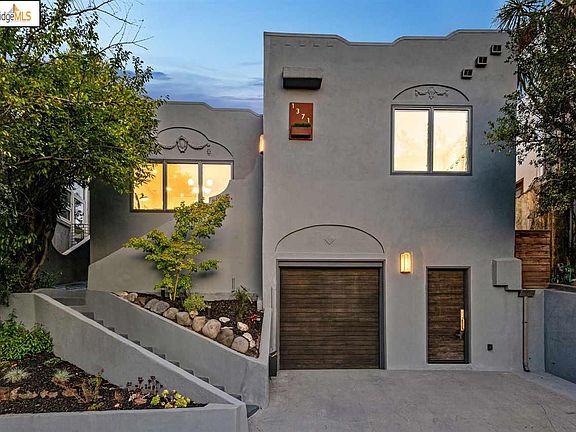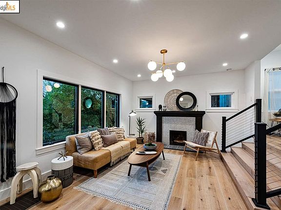 This ultra-chic home was completely reimagined (with permits) in 2017. Modern updates and luxurious finishes such as wide-plank oak flooring, mahogany exterior doors, and lighting by Restoration Hardware pair with original design elements to create a delightful mediterranean meets mid-century aesthetic throughout the home. A space-efficient open floor plan provides for easy access to the deck and manicured low-maintenance outdoor space. The chef's kitchen features high-end appliances, contemporary wood cabinetry, quartz countertops, a Carrera marble mosaic backsplash, and an island with breakfast bar. The larger bedroom has an ensuite bath with sleek modern vanity, hex tile floor, and a tiled walk-in shower. The guest bath features a floating vanity and elongated hex tiling. An attached garage and bonus room complete the home. Great shopping and restaurants in nearby Glenview and Lakeshore, easy access to transit and highway 580. Less than half a mile to Crocker Highlands Elementary.