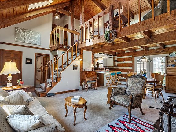Welcome to your hidden gem log cabin home nestled in the town of Jefferson. This chinked log profile home was masterfully constructed by the craftsmen at StoneMill Log Homes using wood hand hewn from Douglas Fir trees sourced from Knoxville, TN. A private drive leads you to an over 1 1/2 acre lot where the 2 bedroom/2 full bathroom home sits. As you enter the foyer, you see the cozy living room complete with wood burning stove fireplace. Two skylights allow the natural sunlight to saturate the interior. The open concept main floor also features a dining room and kitchen with pantry and breakfast bar. Upstairs you can enjoy the view from the loft overlooking the main living area. In the 2 car garage, you fill find plenty of storage and areas for working on projects. This home has many updates including a new roof in 2017, new heating system in 2021, and hot water tank in 2020. This is the first time this home has ever been offered on the market. Do not let it pass you by!