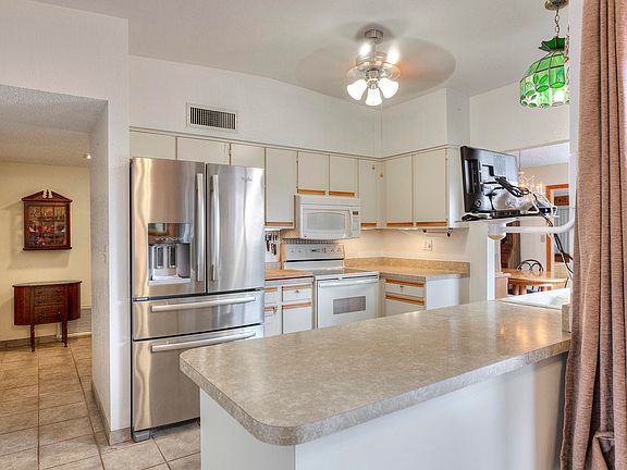 Spacious home in The Villages featuring 2 bedrooms, 2 bathrooms, an AZ room, a breakfast nook, a large double garage with additional storage, a huge yard with lots of citrus trees, a big storage shed in the backyard, new silicone roofing,, and great views! There is currently no G.V.R. on the home, but it is available if the buyer(s) want it. Some furniture available by S.B.O.S.