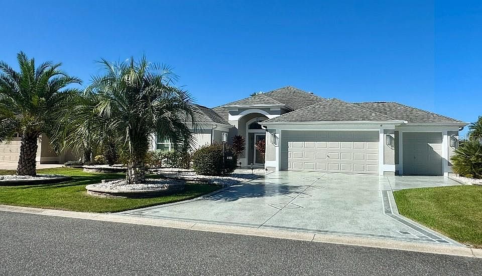 No Bond! Spectacular home with all the extras you are looking for in a forever home. 3 bedrooms, with 3 bathrooms create two private suites, fantastic for a mother in-law suite or just perfect for guests. Three large solar tubes are added light. Neutral designer tile throughout the living whole house, crown moldings on every inch of the ceiling. Blackout electronic blinds and a split air conditioning unit in the enclosed lanai provide that extra space to spread out and entertain. The Chef's Kitchen has a huge counter, great for serving, wood cabinetry, quartz counters, tile backsplash and Stainless appliances. The dining area has a custom beautiful wave glass window. The property has two whole house water treatment system. The owner's attention to detail is evident with all of the lighting and fan choices in the home. A large master suite with a tray ceiling and bath featuring a roman shower and a large soaking tub. Master closet has a custom build in closet system. Large 2+ golf cart garage has epoxy flooring and pulldown attic stairs. The outside space is as impressive as the inside space. Custom designed hardscaping, with a beautiful selection of trees and plants accentuated with low voltage landscape lighting. Custom designed epoxied driveway and walkways great you at the entrance. The side yard of the home is a great size and features a large patio, great for outdoor entertaining. Plus, an ADT whole house protection system with inside and out cameras, reverse osmosis water tanks underneath the kitchen sink, three large solar tubes for lighting and whole house SECO electrical surge protector at the electric box.