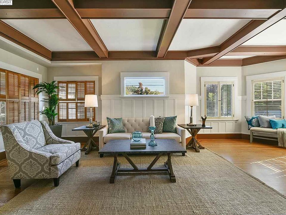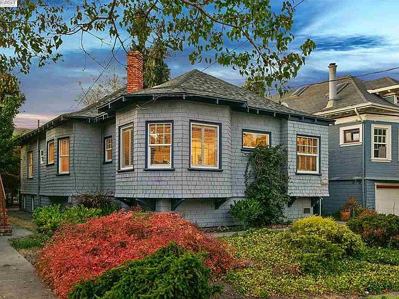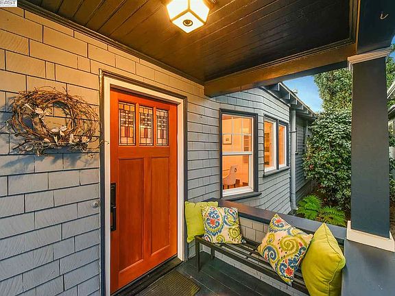 Approx. 25 minute ferry ride to SF. Craftsman bungalow located in Alameda's East End. Built in 1907, this 3 bedroom and 1 and a half bathroom bungalow with FINISHED BASEMENT cohesively pairs period details with clean contemporary stylings. Dramatic box-coved ceilings, Clinker-style fireplace, oak floors with detailed perimeter inlays and classic vertically striped wainscoting, meet fashionable living spaces with modern aesthetic light fixtures. With over 1600 sq. ft. of living space, there are six sunny windows in the living room and in the dining area, bay windows and built-in cabinetry with lead-paned glass doors. Kitchen has granite counters and skylight to brighten the open space. Full laundry room, tank-less water heater. Don't miss the basement! Easy access to transportation, including SF Ferry and BART. Close to schools, parks and shopping. Open Sun.11/19, 2pm-4:00pm.