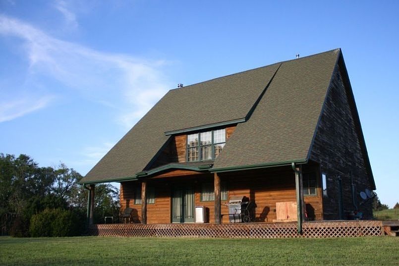 1,920 sq. ft., rustic log cabin on approximately 2 acres with 5 bedrooms, 3 baths, wood deck, and HVAC system. Basement has non-conforming bedroom. Cabin can be used year -round and would make a great primary residence! Property includes 42' x 75' Morton building (3,150 sq. ft.), fully heated and insulated, and a 57' by 80' un-insulated pole building, ideal for machinery storage or livestock facility. Adjacent 200 acres also for sale, contact agent for details!