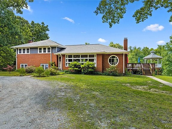 A beautiful park-like private setting retreat with mature landscaping, lots of natural light from many windows, lovely water view, cozy fireplaces and abundant wildlife surrounding. Enjoy driving up the circular drive featuring a massive magnolia tree to this brick Tri-level home that sits quietly on five beautiful acres with a private pond. The home features wood floors, tile baths, spacious rooms. The setting and the privacy are fantastic. Feel the fresh breeze while laying in a hammock or swinging from a large oak tree. Lots of outdoor space to relax or entertain on the large deck complete with gazebo. Have an adventure kayaking on the river (public launch is about a mile) or fishing from the stocked pond located down the rolling grassy back yard. Enjoy countless hours of country living in the heart of Goochland!