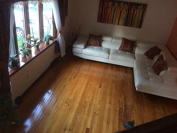 Hola! Nicely maintained home. First floor offers large living room with sunny bay window. Eat-in kitchen with ceramic floors which exits to large deck and nice size yard. Two good size bedrooms (One presently being used as dinning room) and full bath. Shinny natural wood floors thru-out . Updatairs we have three bedrooms (one private off the bathroom) and updated full bath. Full walk-out basement offers family room, laundry room and another room with closets. Plus a ceramic full bath.