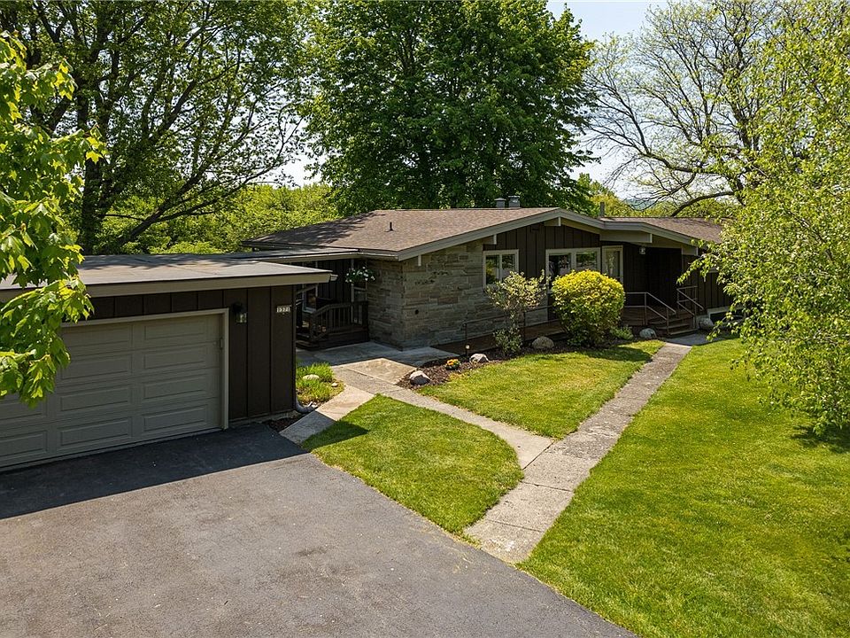 Absolutely refreshing ...this home allows you to just sit back and relax as the work has all been done! This home offers you the feeling of the great outdoors all year long. This might just be the true definition of a "GREAT ROOM" as it's spacious, light, bright, open, and airy plus it's all accented with a most impressive "wall of windows" allowing the natural light to just beam right in. The sliders from the dining area out to the wrap-around deck provide you with even more sunlight. Nice, fully applianced, eat-in kitchen with an overabundance of countertop space and cabinetry to appease even the most discretionary chef of the house. 3 nice-sized bedrooms, 2.5 baths, a first-floor laundry area, and mud room entry, plus .... a lower-level area that's ready and waiting for you to make it your own! Don't wait, this wonderful, move-in condition home in a quiet neighborhood won't last long, Call, Click, or text today for an appt to see!