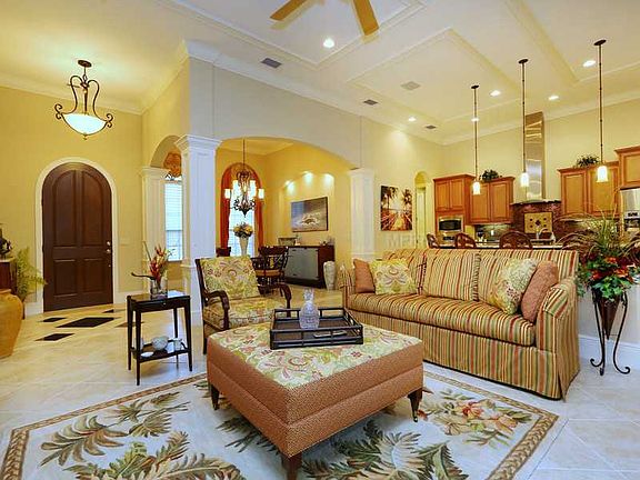 Your very own Tropical Paradise of Privacy. That's what comes over you the moment you walk in.Surrounded by impeccable lighted landscaping, you are met with exquisite wood door at entry w/ column & floor detail in foyer. Fine architectural details featured throughout the home including 7 1/4 baseboards, crown moldings, unique ceiling treatments, great room built-in console drawers & much more. The kitchen is like the center of the universe with the latest counter bar, walk-in pantry, tasteful honey maple wood cabinetry, glass tile backsplash, granite, under counter lighting, stainless appliances, and perfectly open to great room. Disappearing sliders across the whole rear of home opening to your tropical paradise w/private preserve view & heated salt water pool and spa w/water feature, paver deck, outside kitchen w/hood, & stone fireplace creating the absolute perfect environment for entertaining poolside. The master suite is well designed & spacious offering coffer ceiling w/crown, access door to pool, walk-in closets, wood cabinetry in bath w/granite, glass block roman shower, & attractive tile details. Double door entry to front office, & amazing bonus room in rear opening to pool area, & each bedroom has its very own bath w/wood cabinetry. Other features include sizeable mud room/laundry room w/wood cabinets, storage cabinets in garage, pull down attic stairs, surround sound, recessed lighting, & exquisite light fixtures & window treatments. All Impact Glass.