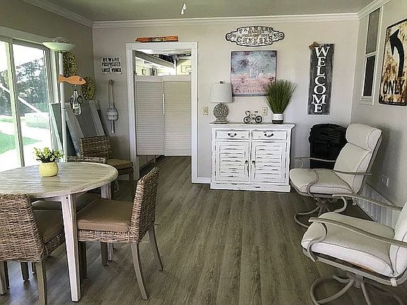 Move in ready, completely remodeled home. New flooring, subflooring, all new windows through out, new electrical panel upgrade, paver driveway around house to patio in private backyard. House is sided and includes a bonus room and lanai with all new flooring and windows. Park owner fee has been paid in full and monthly HOA fees are only $38.50 per month.
