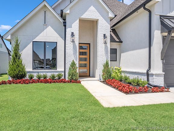 $15K BUYER BONUS for rate buy down &/or closing costs ! Exquisite New Construction located in cul-de-sac. Newly designed floor plan. Fantastic Bixby location. Near Bixby Schools. Gorgeous Modern Farmhouse Design. Roomy study with barn doors. Stunning Chef's kitchen with refrigerator. Coffee bar or work station in large walk-in pantry. Grand 9 foot island with counter seating. Exotic countertops. Spacious eating area. Open family room with built-ins and gas log fireplace. Primary suite plus 2nd bedroom down. Luxurious spa bath opens to boutique closet. Drop zone. Two additional bedrooms up. Spacious game room or flex room up. Extensive wood flooring. Upper end designer fixtures and finishes. Attractive curb appeal. Wonderfully laid out livable home. Listing agent related to seller.