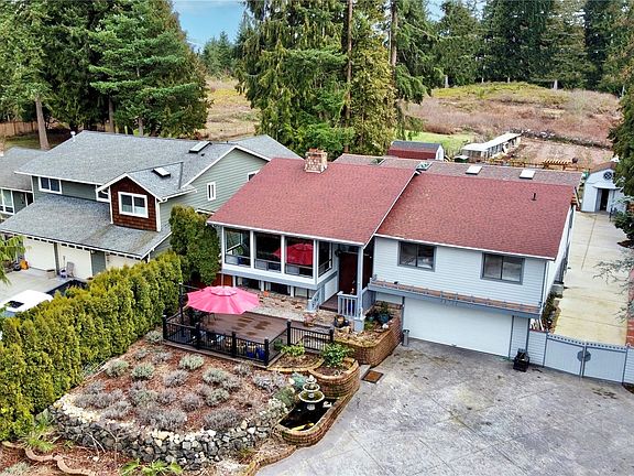 Beautiful home features gourmet kitchen w/granite counters, cabinets, tile backsplash and stainless appliances. Fall in love w/upgrades including new roof, paint, light fixtures, furnace, natural bamboo floors throughout & so much more! Enjoy all remodeled bathrooms, vaulted ceilings& wood burning fireplace on upper and lower levels. Deck&roof are permitted. Relax and entertain on the covered deck with skylights or in your oversized backyard, fully fenced for privacy with mature landscaping, tons of fruit trees, garden space& serene pond w/fountain. Abundant income potential for ADU, workspace or living extension with 2 sheds w/electrical and 1000 sq ft partially finished basement. Plenty of parking space for RV, boat & multiple cars.