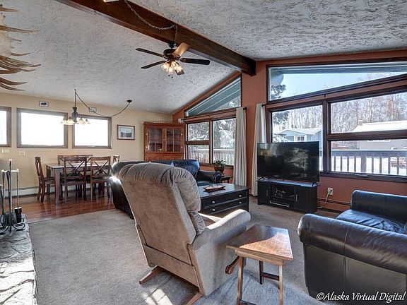 3 bedroom home has been cared for and updated over the years! Energy upgrades 2009 to 4*, newer decks, remodeled baths, kitchen, 2018 new sidearm boiler! newer fences. Downstairs bonus room currently used as 4th bedroom. Sauna in lower bathroom. Tucked off Old Seward Hwy w easy access to Huffman retail, groceries, banks, post office, schools, restaurants! Fenced back yard w sep pet area!