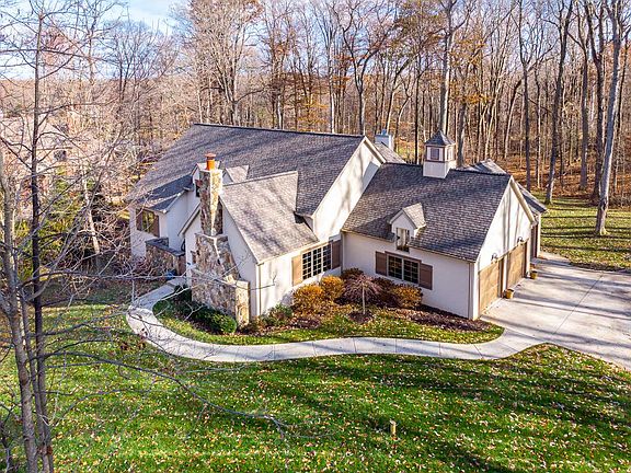 Scotia Highlands will welcome you with the gently rolling topography and the stunning 20 acre lake. Venture back to this hidden European treasure. You will appreciate the artistic, handsome strength of the custom architecture. Enter through the courtyard to the stately open 2 story foyer with exquisite hardwood floors throughout. You will be amazed by the vaulted formal dining/great room ceilings flanked with Indiana barn wood timbers. The masonry floor to ceiling stone wood burning fireplace with beamed mantle can add warmth and coziness. Want to charm the chef in your family? This kitchen will accomplish just that with the abundance of cabinetry, honed granite, subway tiles, professional grade appliances, butler's area perfect for entertaining and large walk in pantry. The family can spend time with the cook in the window lined hearth room with additional fireplace or large breakfast area. Main floor den could be additional 5th bedroom or multi-purpose room (closet easily added). The loft is perfect for hanging out, homework or game room. PLUS you will find the perfect place to entertain when you enter the lower level complete with 2 additional en suites.The cull-de-sac lot is icing on the cake with the large semi-wooded private paradise for entertaining and play.