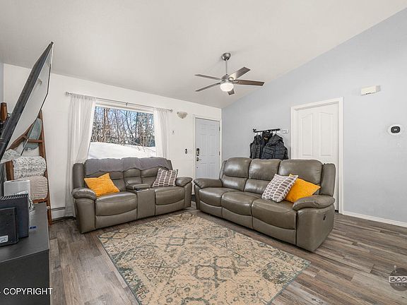VA assumable 3.37% interest rate! Here is your chance to buy a garage with a house attached! This 1008 sq. foot garage has oversized 10' doors, in-floor heat, drains and a built in dog kennel! Perfect for anyone looking to store their Alaska toys and park in their garage too! The home is charming with its large kitchen, vaulted ceilings and open concept design. The two bedrooms are ample sizedand the primary bedroom has an ensuite and a walk-in closet