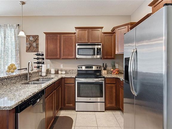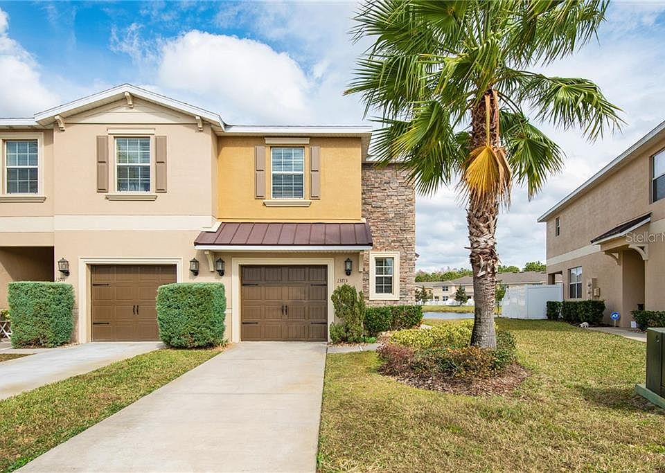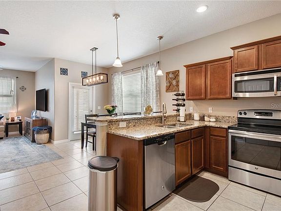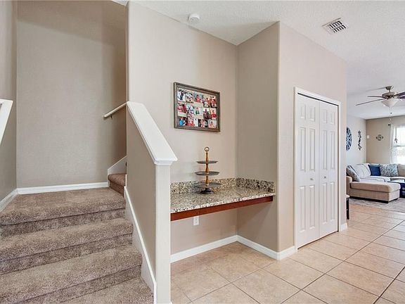 Located 2 miles west of Suncoast Parkway, APPROXIMATELY 30 MINUTES FROM TAMPA INTERNATIONAL AIRPORT, this beautiful 3br/2.5 bath END UNIT townhome on the pond in Verandah is maintenance-free. Popular Lennar Everything-Included home has it all, right down to the STAINLESS STEEL appliances and GRANITE countertops. Kitchen also features pendant lights, staggered cabinets, large pantry, snack bar, microwave. And hey...entire first floor is tile. Fenced, extended lanai with brick pavers overlooking scenic, tranquil pond...talk about eye candy! So much natural light comes in, bright and beautiful living area, Double door entry to master bedroom, walk-in closet, and double sinks in master bath. PANORAMIC VIEWS from master bedroom to a serene pond. In addition to 3 bedrooms loft area is perfect for office, study, or flex space. Check out extra storage space under the stairs! Jack n Jill bathroom services the extra two bedrooms upstairs. $148.20/mo HOA includes pool, roof, water, painting, landscaping, trash, and more: truly MAINTENANCE FREE! Notice the metal roof extension over garage and stone accent facing street. Also, BOTH STORIES ARE CONCRETE BLOCK.