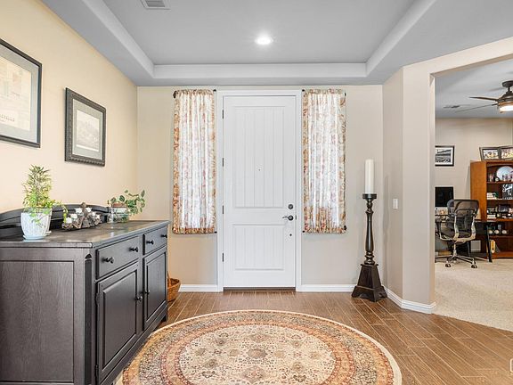 How sweet it is! Price improvement plus high-end refrigerator, washer and dryer with pedestal bases are also being offered with an acceptable offer. This exceptional, highly upgraded home offers quality and true pride of ownership throughout. The popular Barton plan on a corner lot, conveniently located adjacent to Highgate community park, pool, fitness center and clubhouse features a 3-car garage, 3 bedrooms, a bonus room currently utilized as an office, 2.50 baths, beautifully appointed island kitchen with SS appliances, double ovens and customizable recessed lighting, Ring doorbell and Nest thermostat and pre-paid solar lease. The interior decor creates an aura of calm serenity and could grace the pages of House Beautiful. The back yard with raised flowerbed and putting green has been beautifully and thoughtfully designed for water conservation, minimum maintenance and maximum ambiance. This gently lived in and lovingly cared for home is truly a must see!