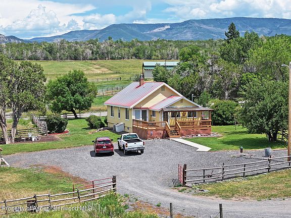 year-round. Covered deck entryway into the charming 3 bedroom, 1 3/4 bath, living/dining/ kitchen area, hardwood/vinyl floors with natural light and French doors leading to deck. Appliances, island, cast iron sink and cupboards create an efficient kitchen. Enjoy coffee or meals on the private enclosed back porch. The basement is mostly finished with a family room, third bedroom, and ¾ bath in laundry room. There is also a maintenance/mechanical room and large unfinished storage room that could be converted to a fourth bedroom. Central air, ceiling fans, water softener are all part of this charming home. Unbelievable views and recreation in every direction. Vega State Park, Powderhorn Ski Resort and Grand Mesa National Forest and more are just a short drive away. Easy, year-round access and a 45-minute drive to Grand Junction and major shopping. Breathtaking views all around include Battlement Mesa and Sunnyside Mountain ranges with Grand Mesa looming in the background. Plateau Valley stretches below with sprawling neighboring ranches. Known landmarks, Land's End, Chalk Mountain and the Bookcliffs where the wild horse sanctuaries are located rise tall on the horizon. Cement block storage shed with concrete flooring. 2000 bushel grain bin. Livestock set up with barn, corrals, loafing sheds. Elk fenced hay stack area. A short walk down to the creek to the creek takes you to a clearing for picnics or a quiet place to relax under blue skies or star studded nights.