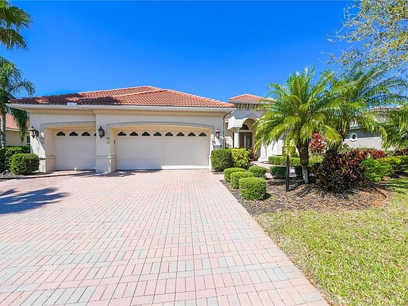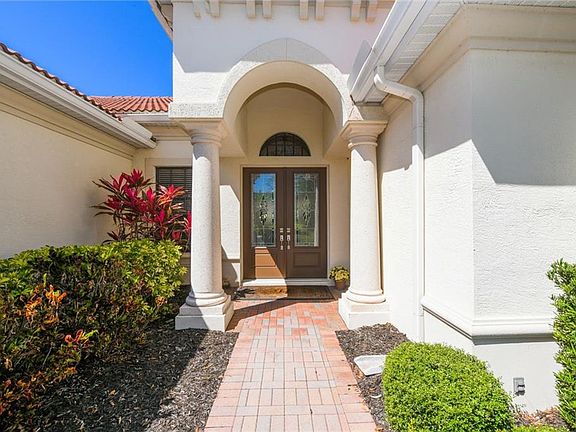 Enjoy the fabulous lifestyle that Lakewood Ranch Country Club is known for! Welcome to this stately home that is perfectly positioned with water views and privacy. Relaxation will come easy in the open floor plan with multiple gathering areas for family and friends. Enjoy the second floor retreat with wet bar and lanai with lake views. This split floor plan offers three bedrooms plus a generous size study with sliders to the expansive outdoor space! The master suite will not disappoint with his and hers closets, dual sinks, large soaking tub and walk in shower! The well appointed kitchen features granite counters, gorgeous cabinetry and bar seating! The eat in kitchen features aquarium window overlooking the pool and spa! The disappearing sliders corner to offer more outdoor living space and easy access to the outdoor kitchen, pool, and spa. Three car garage, study large enough to be a fourth bedroom and outstanding curb appeal make this home a must see! Make your appointment for a private tour today. You won't be disappointed!