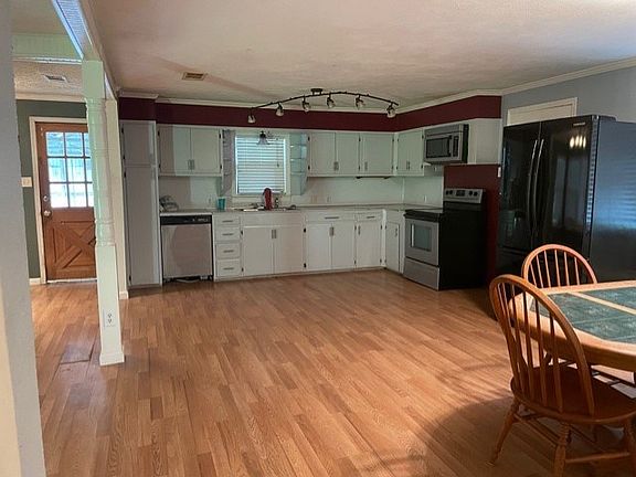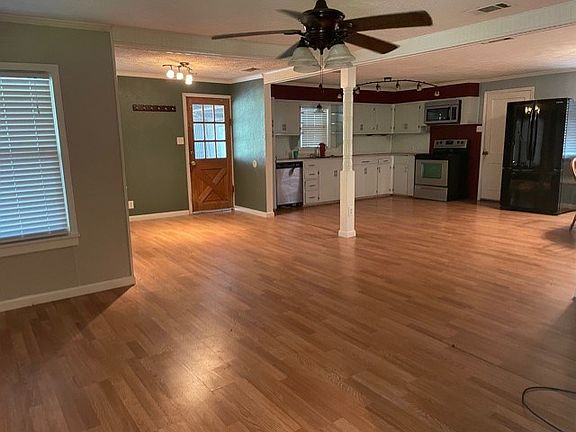 Country living..... This home features a large front porch that overlooks a breath taking large oak tree. The open concept flows through the kitchen, living and dining room and the master suite has has it's private bathroom. Enjoy the indoor laundry room for those cold or really hot days. CASH ONLY. SOLD AS IS.