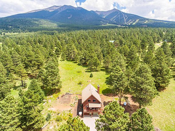 Snow Bowl Estates I located 1 mile west of the AZ Snow Bowl provides optimal winter recreation opportunities. The Arizona Trial located 1/2 mile from this home provides hiking and biking adventures the rest of the year. Fresh paint has been added inside and out. The kitchen, five burner stove and flooring are all new. In addition to the forced air furnace there are two wood stoves with beautiful Pool Flag Stone hearths. The living room T & G ceiling is vaulted and provides space for large picture windows that capture the San Francisco Peaks views. The outdoor living space is dotted with Wild Iris. There is a fire and horse shoe pit. Privacy is guaranteed by the 2.41 acres that border Forest Service land on 2 sides. At this elevation the air is clear and the night skies sparkle.