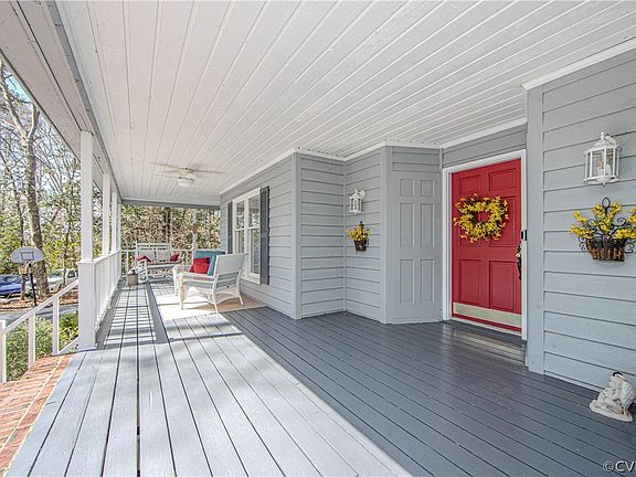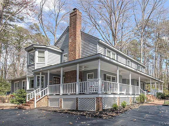 Sellers fell in love with this home and full country wraparound porch... very sad to be relocating! Fantastic home for entertaining. Porch gives access to living room, kitchen, "sun porch" area. And yes, the porch swing does convey. New roof 2022, new HVAC 2018 and 2019, new 50-gallon hot water heater 2021, bathrooms updated, new microwave 2023, new kitchen sink and disposal 2018, large fenced back yard, recently sealed driveway. New solar pole light at driveway 2023. New floor in family room 2019. Hardwood floors throughout bedrooms. Great storage throughout home, lots of linen closets, all bedrooms have a walk-in closet... and the attic is fully floored. Encapsulated crawlspace 2021. Basketball hoop conveys. Close to Swift Creek Reservoir and Brandermill's many trails!