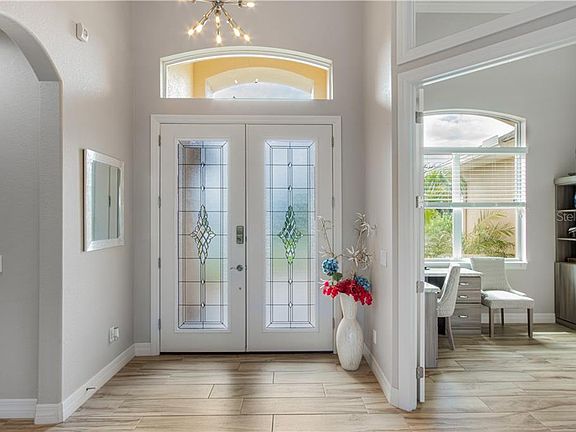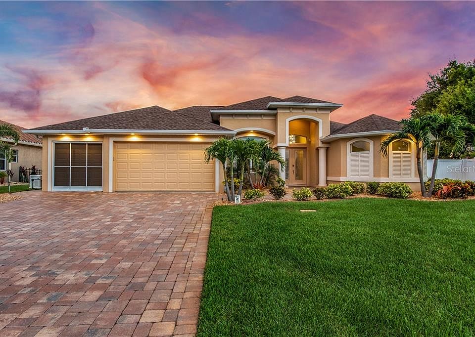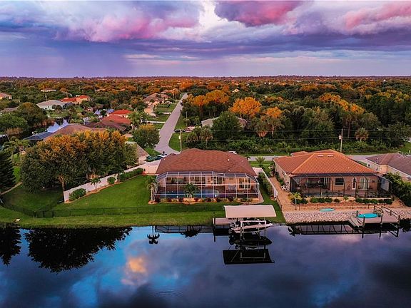 If you've been dreaming of an idyllic Florida lifestyle, this impressive waterfront home provides everything on your wish list Tropical landscaping, interiors that are both classic and functional, a private outdoor living space that embraces nature, and access to open water by boat - life truly doesn't get any better. Built in 2016 by DM Dean and extensively upgraded to the highest standards, this 3 bed/2 bath plus den, waterfront, pool home in South Gulf Cove has it all. The interior of the home features an open floor plan highlighted by extensive quality finishes throughout such as tray ceilings, crown molding, and elegant lighting and fixtures. Architectural details include tile flooring throughout, high ceilings, a stunning quartz kitchen counter, a den with built in desk and Murphy bed, and views from nearly every room. The master suite has walk-out access to the lanai, two walk-in closets & a large master bath w/split sinks, soaking tub & spacious shower. Discover Florida living out on the lanai, which features an in-ground 40' pool, hot tub & summer kitchen. Steps from the backdoor, you'll find the dock w/ 8000lb boat lift, so you can set sail on your latest adventure from your own backyard. Other amenities include a large laundry room w/ built in storage cabinets, attached three-car garage, hurricane protection, whole-house generator, mosquito mister, water softener and so much more. Well-maintained, tropical landscaping surrounds the home, which is fully fenced for privacy. The three lots Sellers will consider selling the three lots across the street if the buyer desires additional privacy. Escape to this waterfront oasis and begin living the lifestyle you deserve.