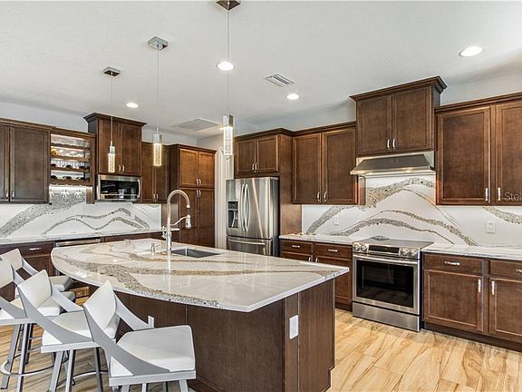 • Interior Features: Ceiling Fans(s), Eating Space In Kitchen, High Ceiling(s), Master Bedroom Downstairs, Open Floorplan, Split Bedroom, Walk-In Closet(s), Crown Molding, Solid Surface Counters, Window Treatments, Dry Bar, Tray Ceiling(s), Coffered Ceiling(s)