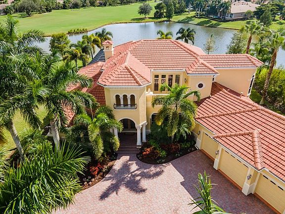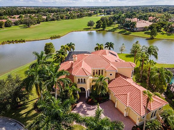 Sweeping greenery and a refined multi-level floorplan featuring a large elevator make this custom, four suite estate in Lakewood Ranch the picture of convenience and perfection. Perfectly located on a quiet cul-de-sac and masterfully constructed by Peregrine Homes, enter to views of a lake and Lakewood Ranch Country Club's Cypress Links 5th fairway and an array of fine details like coffered ceilings, hardwood floors, fireplaces, and two levels of spacious living comfortable for every member of the family. Designed for gathering, the entire main level feels connected - flowing from a formal dining and living room to a central gourmet kitchen, casual breakfast nook and family room. Whip up holiday meals with the flair of a Michelin Star Chef in a gourmet kitchen featuring GE Monogram stainless steel appliances - including six-burner gas range with griddle and pot-filler - walk-in pantry, butler's pantry with wine cooler, and breakfast bar with seating. Family and guests will enjoy time in front of the living room's fireplace or out on the paver lanai to take in breathtaking vistas of wildlife and the Gulf Coast sky. Winter nights are made cozier dining alfresco in the outdoor living space equipped with a full summer kitchen, fireplace, and covered seating area and summertime heat is instantly remedied with a spectacular custom pool with water features and palm trees. Two main-floor guest suites afford premier comfort with high ceilings and large, custom reach-in closets. A master wing is optimally placed for serene privacy and caters to your every need with an elevated sitting area, lanai access, and decadent bath featuring soaking tub with hydro massage jets and large walk-in closets. Take the elevator to a grand second-floor second master suite with full living room, kitchen, bedroom and bathroom. Two terraces are perfect for morning coffee or simply catching a glimpse of your personal paradise. Other features of note are the main-level den with stunning lake and golf course views and an oversized three-car garage. LWRCC is at the epicenter of Lakewood Ranch and provides convenient access to fabulous restaurants from Italian to Thai, a movie theater, sports and healthcare amenities, and so much more. This is limited edition living with the style and setting of a lifetime.