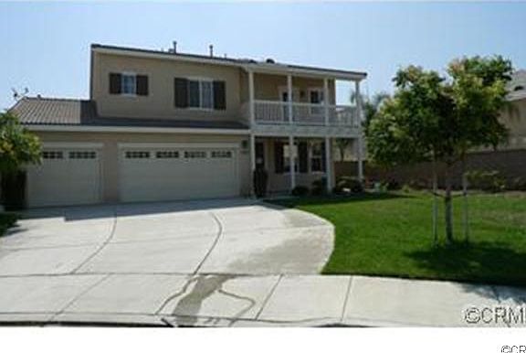 This wonderful Eastvale home is located at the end of the cul-de-sac and sits on very large lot. The home features 5 bedrooms, 3 full bathrooms, and has numerous upgrades throughout. The kitchen has beautiful wood cabinets, granite counter tops, stainless steel appliances and recessed lighting. The room opens into a large family room with a fireplace and is perfect for entertaining. There is a nice sized bedroom and full bathroom downstairs as well. Upstairs has 4 additional bedrooms, including a large master suite. The property also has a huge backyard with a large covered patio.