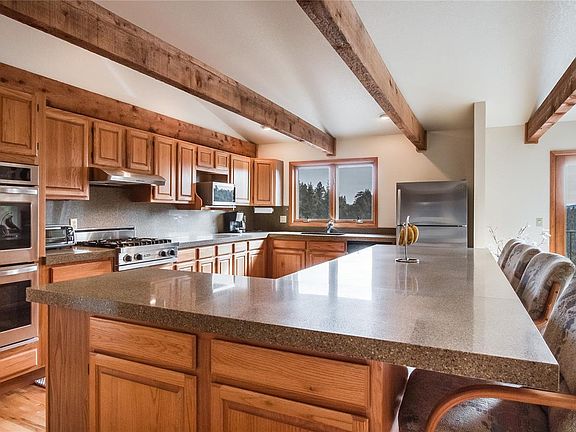This 1993 home features a popular prow-front design and main level living. It will be hard to find a larger kitchen which is well designed and offers plenty of space and an enormous island and walk-in pantry. The living room offers a wood fireplace and the abundant windows capture southernly views and warm sunlight. The main level master has deck access as well offers a large bathroom with soaking tub and walk-in closet. Also on this level is the laundry and secondary bedroom and bath. The lower level is home to another large family room as well as 2 bedrooms and 3rd bath. Don't miss the huge storage area off the garage. You will appreciate the upgraded appliances, new exterior paint and trex decking. 7+ acres insures some privacy.13719 Elsie Road ??? 3316 square feet, 4 bedrooms (3 bed/6 person septic), 3 bathrooms, 2 car oversized garage built in 1993 on 7.73 acres. Huge kitchen and main level living.