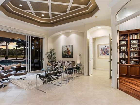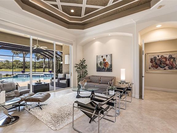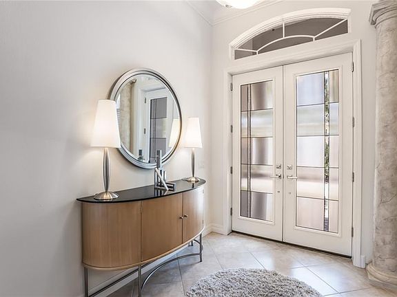 • Interior Features: Ceiling Fans(s), High Ceiling(s), Master Bedroom Downstairs, Split Bedroom, Crown Molding, Walk-In Closet(s), Window Treatments, Open Floorplan, Solid Wood Cabinets, Eating Space In Kitchen, Wet Bar, Built in Features, Stone Counters, Tray Ceiling(s), Coffered Ceiling(s), Thermostat