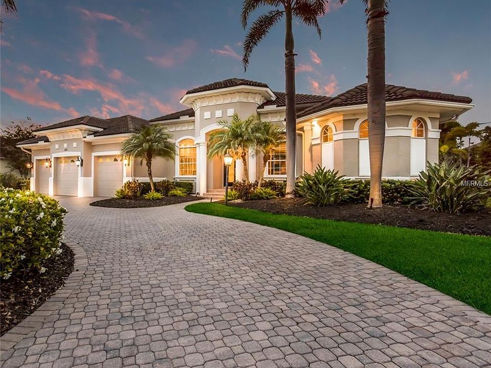 Located in Lakewood Ranch Golf and Country Club. When you enter this Home thru the beautiful new art glass doors you will feel a sense of calm as you are mesmerized by the stunning water views! This Home is beautifully poised on a quiet cul da sac with a circular driveway and lush landscape. Thoughtful attention was given to provide a seamless Florida Lifestyle starting with a light & airy open floor plan with high double tiered ceilings and expansive outdoor living areas. Complete with a full summer kitchen, heated salt water pool & spa plus expanded covered areas all overlooking the stunning views of the lake and golf course. At the Heart of the Home is the well designed kitchen boasting solid wood cabinetry, granite, upgraded appls, extended island & large walk-in pantry. All highlighted by the expansive aquarium window showcasing the gorgeous views. There is plenty of room to relax in the spacious family & media rooms each featuring 10' pocketing sliders integrating indoor & expansive outdoor living. Entertain in the living & dining rooms complete with Butler's Bar. Savor the peace & quiet of the Master suite where you'll wake up to the sun rising over the lake. Master bath has a large soaking tub, walk-thru shower & an abundance of cabinetry. The split floor plan is complete with 2 add'l bedrooms & baths plus a large den/study with custom built-ins. This Home is completely refreshed and loaded with upgrades. Live your dream, make this Home yours! (Complete list of updated features is online)
