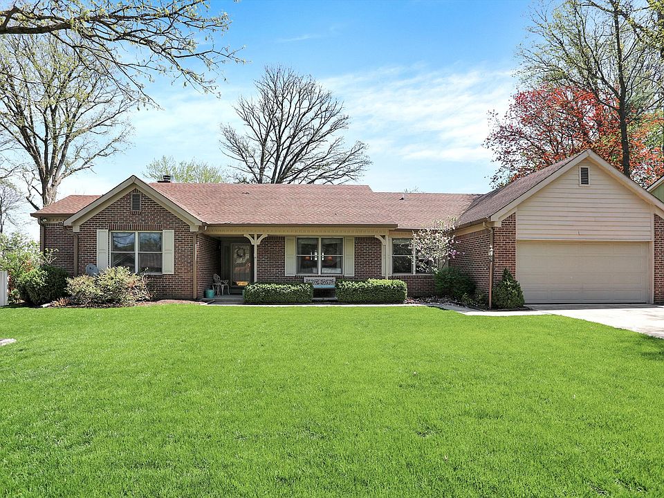 FANTASTIC, clean & well-maintained 4 BR, 2 full bath, brick RANCH home in the heart of Carmel! Home offers a split floor plan, vaulted ceilings, hardwood floors, beautiful brick gas fireplace and fully fenced backyard with 2 year old privacy fence. Large kitchen features a center island, SS appliances, pantry, desk area and plenty of cabinet storage. Master suite has connected bath, walk-in-closet, garden tub & shower stall. Some recent updates include NEW garage door, NEW rear sliding French doors, NEW utility sink in laundry room & NEW locking door to crawl space. Storage shed is only 5 years old. Enjoy watching the squirrels and listening to the birds on your back deck overlooking landscaped backyard. ALL appliances included!