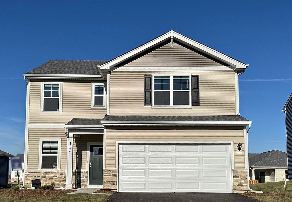 Discover your new sanctuary at 1372 Aspen Ln in Pingree Grove, Illinois, a beautiful new home in our Cambridge Lakes North community. This home will be ready for a quick move-in! This scenic homesite includes a fully sodded yard. As you drive up, you will be greeted by a beautiful stone facade accent and enjoy the spacious yard! This well-designed Sienna floor plan includes 3 bedrooms, loft and 2.5 bathroom. Entertaining will be easy in this open-concept kitchen as the dining area flows into the family room. The kitchen is highlighted by a large island with overhang for stools, modern White cabinets, walk-in pantry, modern stainless-steel appliances, quartz countertops, and easy-to-maintain luxury vinyl plank flooring. 9' ceilings on the 1st floor! As you head upstairs, you'll first notice even more flexible space waiting in the 2nd-floor loft, offering great options for a playroom or study/work area. Escape to your private getaway in your large primary bedroom and en suite bathroom with dual sinks, quartz top vanity, and walk-in shower. Convenient 2nd floor walk-in laundry room, 2 additional bedrooms with a full second bath and a linen closet complete the second floor. Impressive efficiencies like the ERV furnace system and tankless water heater round out the amazing features this home has to offer! Cambridge Lakes North is picturesque community, with its scenic charm centered around a vibrant outdoor pool and pavilion, BBQ and firepit, playgrounds connected with miles walking paths and will soon be home to Pickleball and Bocce Ball courts. Enjoy being minutes from easy access to Route 47, Route 20 and Route 72 or commute to Chicago in under an hour via I-90 or the nearby Metra Train. Plus, close to Randall Road shopping corridor with lots of restaurants! Our home includes our America's Smart Home Technology featuring Smart Home Features including video doorbell, Honeywell thermostat, Door Lock, Garage Door Opener, Deako smart light switches and an Amazon Echo Pop which allows you to monitor and control your home from the comfort of your sofa or far away from your smartphone. Builder Warranty 1-2-10 is included. Photos are of a similar home. Actual home built may vary.
