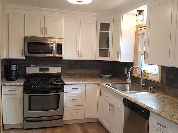 Fully remodeled home offers one floor living with a finished basement. Beautifully updated kitchen with white shaker cabinets, pantry and pallet wall.