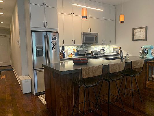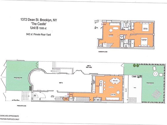 Available for short term only: from July 17 - August 30h. This famous, romantic, Landmarked building, featured in the New York Times Article, "125 Years at 1372 Dean" is a neighborhood icon in the Crown Heights North historic district. Built in 1888, it is nicknamed "The Castle" from its impressive brick facade and three-story curved turret. Residence B is a spacious two bedroom, two and a half bath garden duplex unit with a private terrace and an expansive rear yard. Meticulously renovated, this home offers high ceilings, walnut hardwood flooring, Belizean wood shelving, floating staircase, radiant floor heating in the bathrooms, in-unit washer and dryer, plentiful closet space, custom light fixtures, video intercom, central heating and cooling, piano, and a playroom / home office space. Enter the apartment to an open living, dining, and a generously sized sit-in kitchen arrangement. The kitchen is complete with Caesar stone countertops and Maytag stainless steel appliances and hand-painted Moroccan tile work. Enjoy the stunning oversized landscaped backyard and Weber grille. The unit is completely furnished. Home to Brower Park and the Brooklyn Museum, this landmarked Crown Heights enclave is alive with the perfect Brooklyn blend of excellent transportation, great restaurants, cafes, bars, and shops surrounded by Crown Heights' signature architecture - stately Brownstones and stunning mansions. Pets on approval. Utilities are NOT included (Internet, electrical, gas, water)